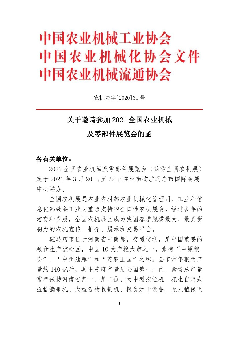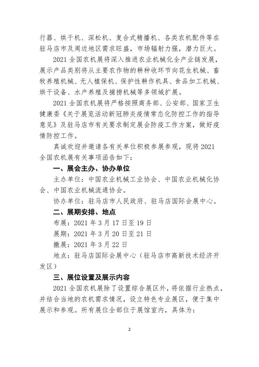 2021全国农业机械化及零部件展招展函览会