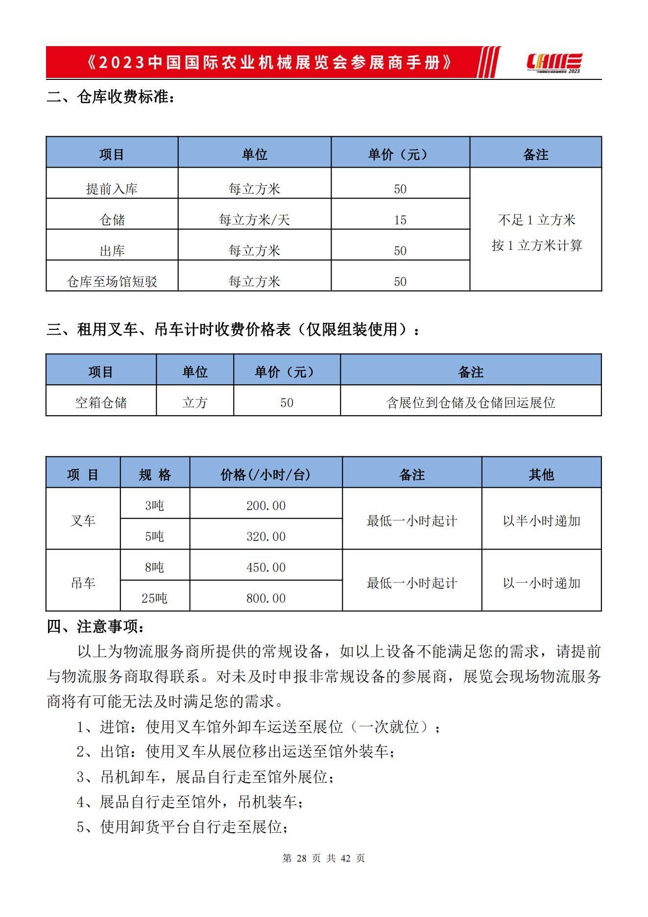 2023中国国际农业机械展览会《运输及仓储收费标准》