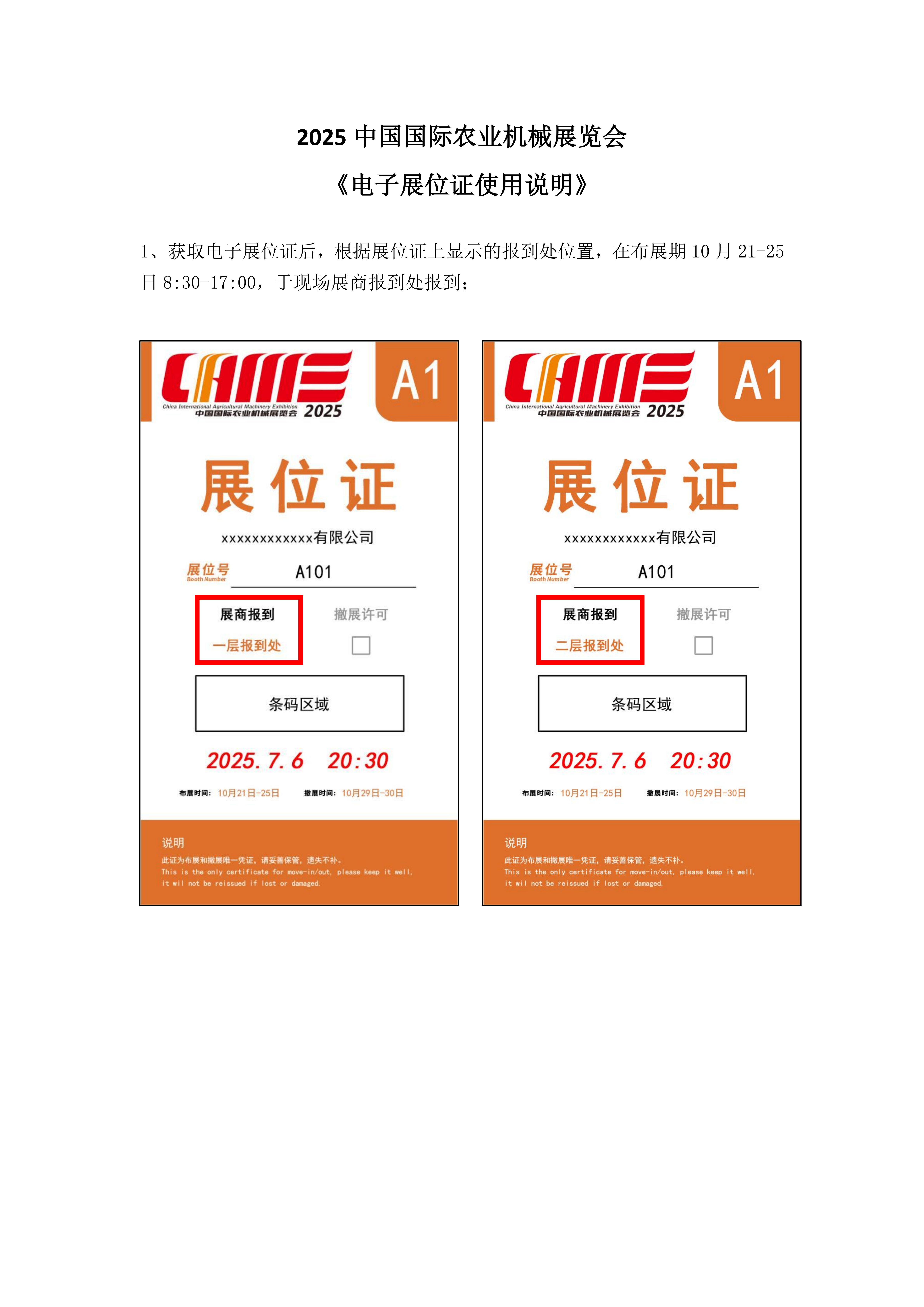 2025中国国际农业机械展览会《电子展位证使用说明》